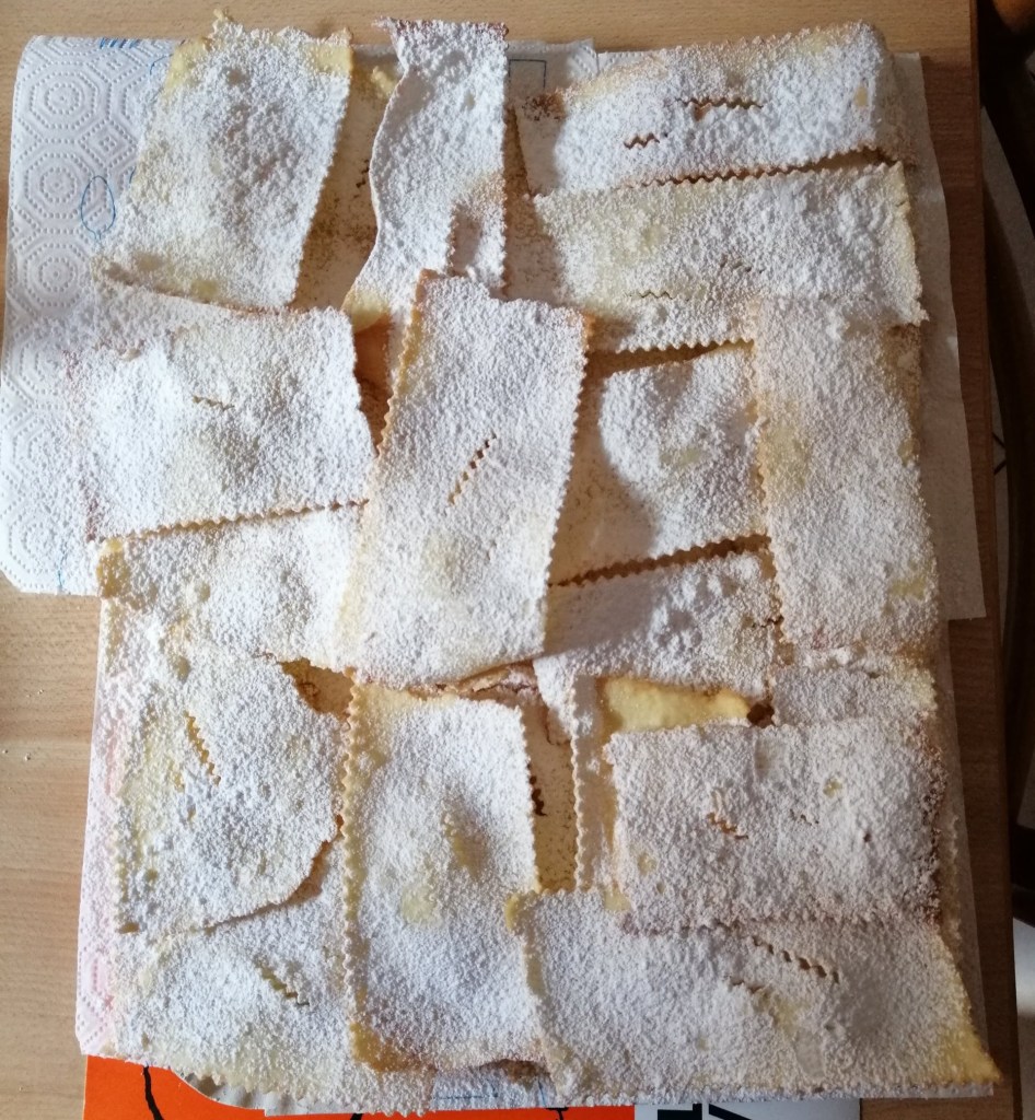 Se sì, come le chiami? Per me ferrarese sono i crostoli e non ho ancora trovato nessuno che li faccia più buoni di quelli della mia mamma. Gné gné gné.